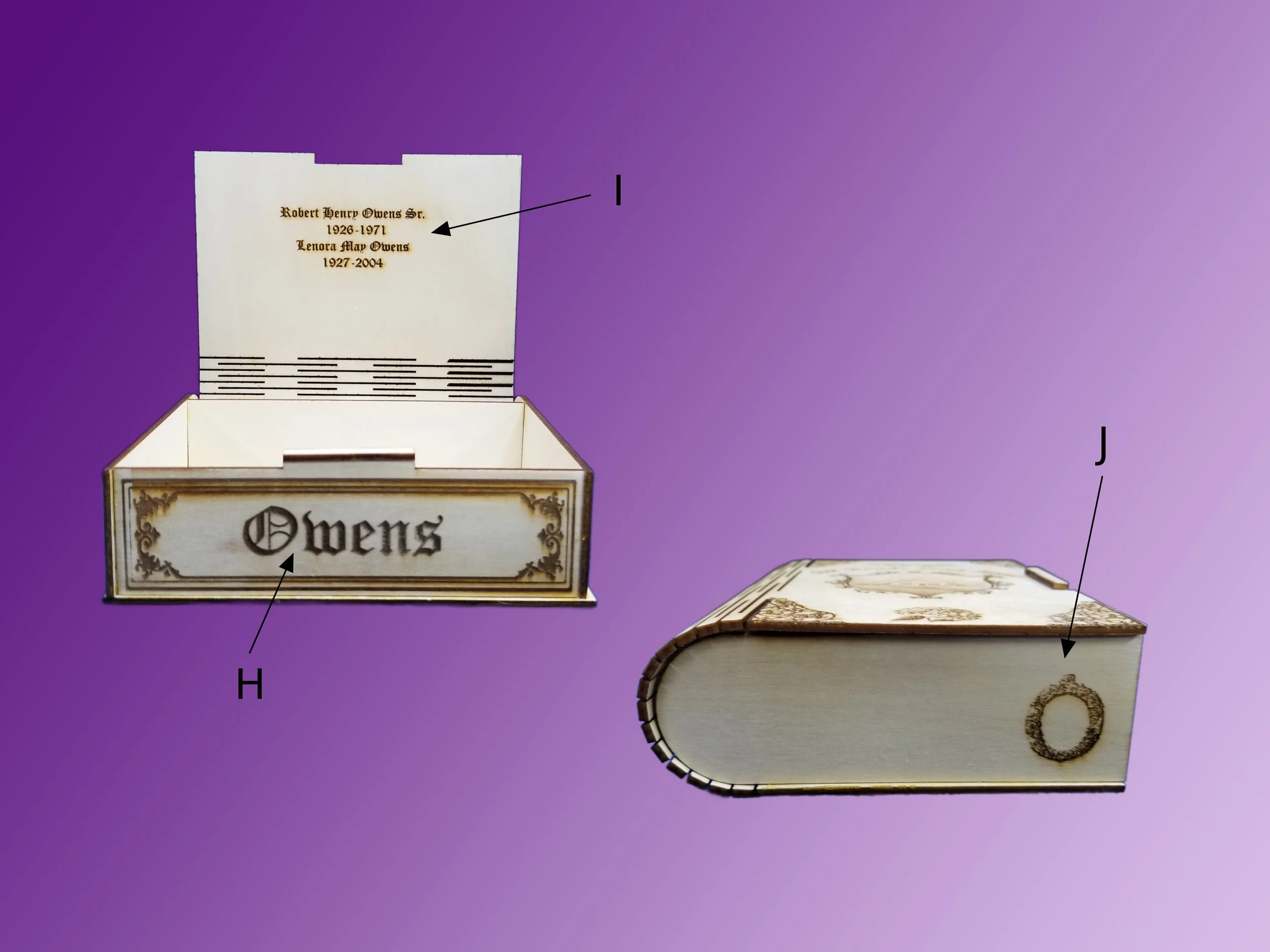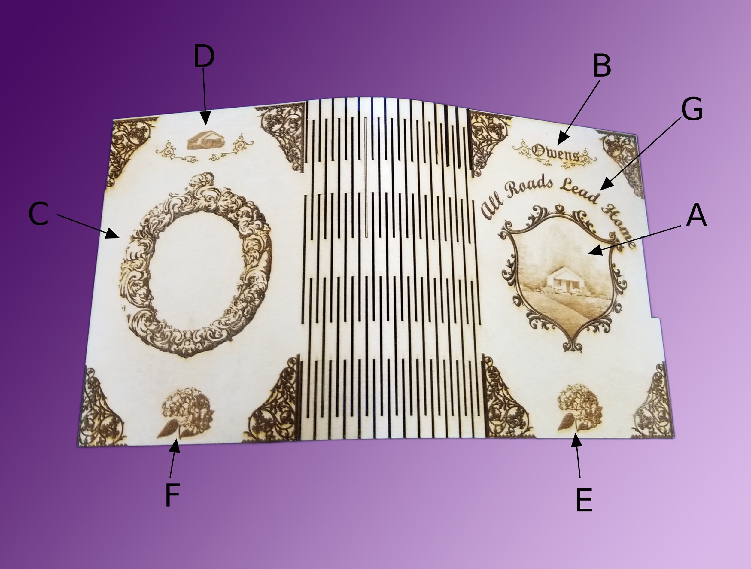 Laser engraved on basswood with your custom photos, this book-shaped memory box is a great personalized gift or sentimental box for you to keep your precious memories in. Preserve your beloved memories onto wood as treasured keepsakes. This box is approximately 5”X7”. Please be aware that making this product takes time and depending on the number of orders I am handling can take at most two weeks before it ships out. You may use a photo in place of a letter on the back of the book box in the area labeled ‘C.’ Additionally, if you want writing such as a name or date in place of a photo, you have the option to do so in areas D, B, E, and F. Be sure to read and fill out the form upon checkout. If you want a different shaped frame for the main front and back photos that what is pictured, let me know as well.